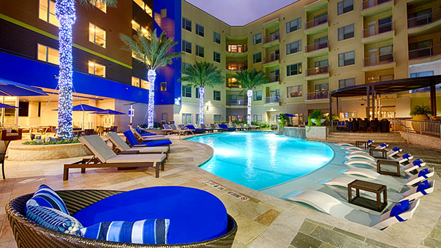 Features: Sophisticated urban oasis with chic designer finishes, Stainless appliances & Quartz countertops, Splash into lavish infinity pool with pool lounge, Poolside Ping Pong Table, Mingle with neighbors at the Sky Lounge, Shuffle Board and Pool Table, Stay fit! Athletic Club & Cycle Station, Yoga anyone? Come to the Sculpt Studio, Fido will love the Dog Spaw – Dog Wash, Convenient package concierge and dry cleaning service, Feel the pulse of the City only steps away from everything